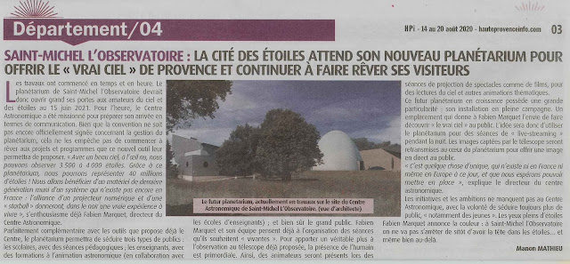 Des articles parus dans dans HAUTE PROVENCE INFOS du 14 Août 2020 nous font rêver
