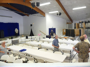 La matinée avait commencé par le rendez-vous des bénévoles pour préparer les lieux, installer les tables pour le repas, et le coin apéro, dérouler les nappes, pendant qu'Angélique DESSAIN et son compère Antonin DUPE, les humoristes qui animèrent de mains de maître tout l’après-midi installaient leur scène avec moultes décors, éclairages et sonorisation.